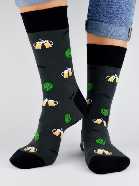 Męskie wzorzyste skarpetki wykonane z przyjemnej bawełny. Skarpetki z ciekawym wzornictwem. Posiadają komfortowy ściągacz oraz płaski szew.