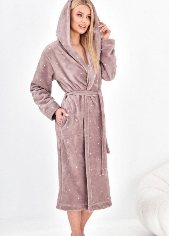 Miękki i niezwykle przyjemny w dotyku szlafrok damski długi z kapturem. Posiada wygodne kieszenie, wiązany w pasie.