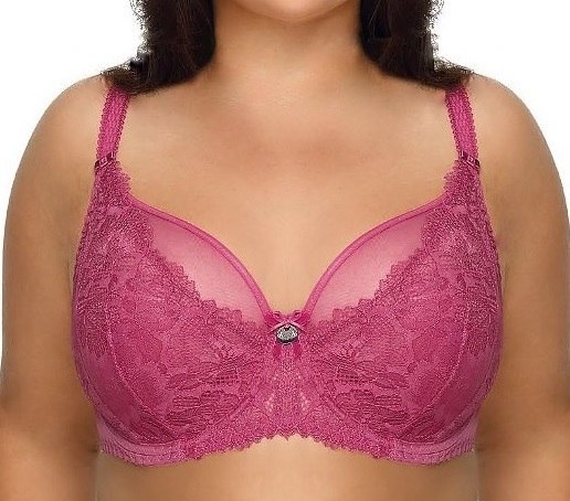 Miękki biustonosz z fiszbinami. Miseczki z podwójnej siateczki i koronki o kwiatowym motywie. Na łączeniu miseczek szyfonowa kokardka z zawieszką. Boczki gładkie. Ramiączka nieodpinane, regulowane.Skład: 88% poliamid, 8% bawełna, 4% elastan.