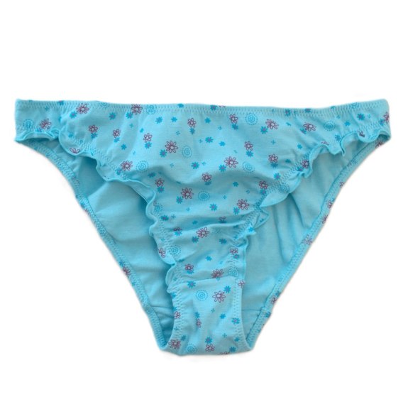 Figi damskie z wysokogatunkowej bawełny zapewniają uczucie komfortu i wygody oraz idealnie dopasowują się do sylwetki, Boki obszyte uroczą falbanką .Skład: 97% bawełna, 3% elastan.