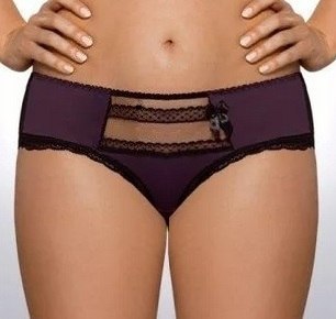 Figi z mikrofibry i delikatnej tiulowej siateczki, obszyte koronką. Tył jednolity, gładki.