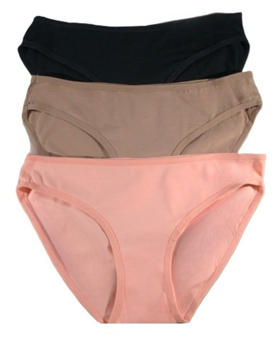Figi damskie o kroju bikini wykonane z wysokiej jakości bawełny. Pakowane po 3 sztuki. Skład: 95% bawełna, 5% elastan.