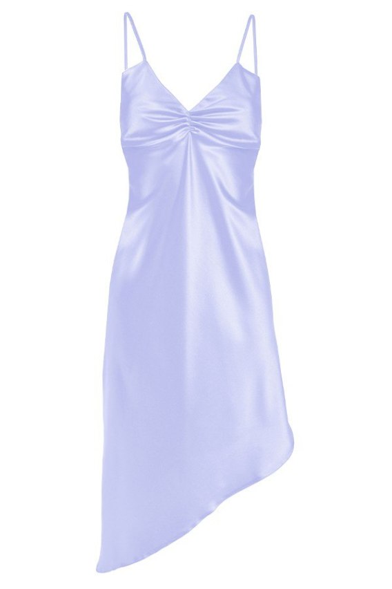 HALKA GŁADKA Z TRÓJKĄTNYM, DELIKATNIE MARSZCZONYM DEKOLTEM. RAMIĄCZKA SĄ CIENKIE I REGULOWANE. DÓŁ HALKI JEST ASYMETRYCZNY, Z JEDNEJ STRONY BOK JEST DŁUŻSZY.