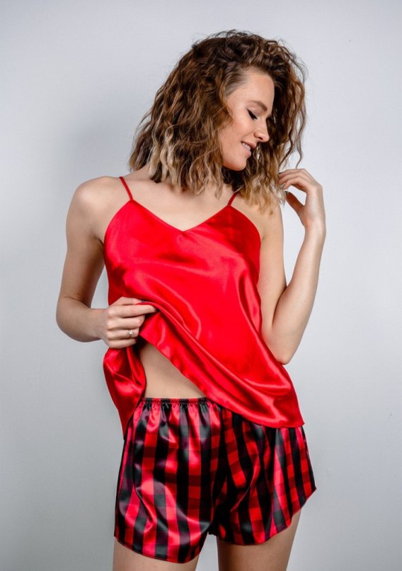 Szukasz piżamki idealnej na Święta Bożego Narodzenia, a jednocześnie chciałabyś, żeby posłużyła ona także poza świątecznym sezonem? Co więc powiesz na ten uroczy model? Komplecik DK-KK z kolekcji świątecznej dostępny jest w dwóch różnych wersjach. Różnią się one zaledwie kolorem koszulki - w jednej wersji jest ona czerwona, natomiast w drugiej czarna. Wybierz tą, która bardziej Ci się podoba. Piżamka ta doskonale pasować będzie do świątecznego nastroju, ale także sprawdzi się podczas gorących, letnich nocy. Ramiączka koszulki mają możliwość regulowania, dzięki czemu bez problemu można dopasować ją do danej kobiecej sylwetki. . Czuj się kobieco i wyglądaj modnie z małą pomocą Dkaren. MATERIAŁ: SATYNA SKŁAD SUROWCOWY: 100 % POLIESTER. Jak prać i prasować? Taki materiał najlepiej prać ręcznie w temperaturze 30°C. Proszę nie chlorować, nie czyścić chemicznie i nie wirować. Prasować w temperaturze 110°C.