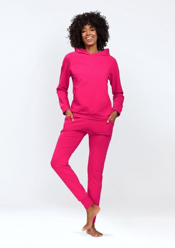 Komplet dresowy damski Seattle to nie tylko doskonały sposób na zachowanie wygody i stylu, ale także symbol wszechstronności. Bluza na długi rękaw z kapturem zapewni Ci ciepło i wygodę w chłodniejsze dni, a miły w dotyku materiał sprawi, że będziesz chciała nosić ją przez cały czas. Duża kieszeń umożliwi przechowywanie drobnych przedmiotów, a brak zamka sprawi, że bluza będzie szybka i łatwa do założenia.