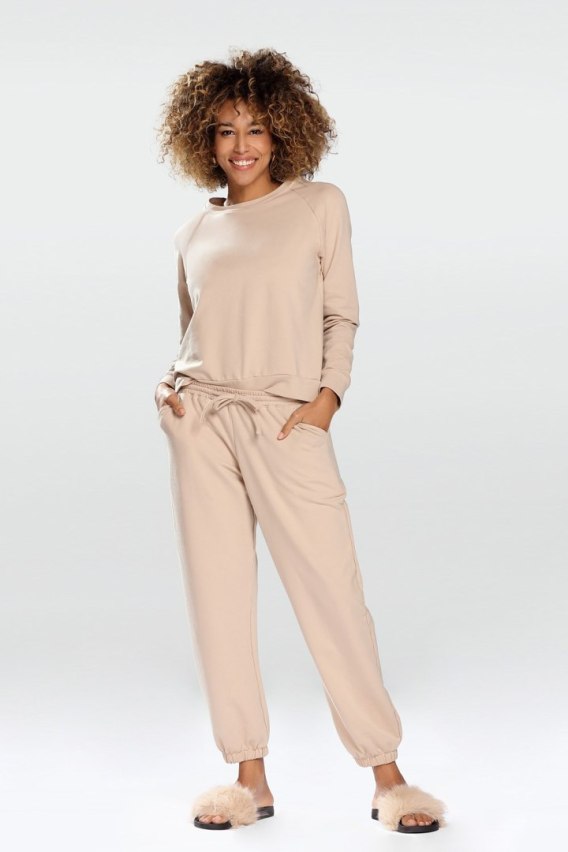 Do zestawu dołączone są spodnie dresowe, które zachwycą Cię zarówno swoją wygodą, jak i praktycznymi detalami. Wykonane z gładkiego materiału, spodnie posiadają dwie kieszenie na przodzie, które pozwalają na wygodne przechowywanie drobnych przedmiotów. Gumka w pasie ze sznurkiem gwarantuje idealne dopasowanie, umożliwiając Ci kontrolę nad luźnością spodni.