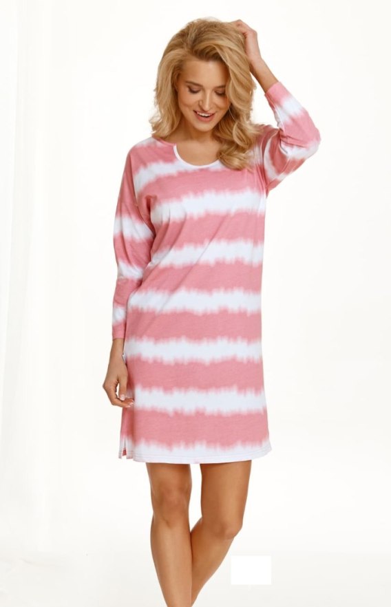 Koszula nocna z długim rękawem. Wykonana z delikatnej bawełny. Luźny, wygodny krój, fantazyjnie wycięty dekolt. Długość przed kolano. Skład: 100% bawełna.
