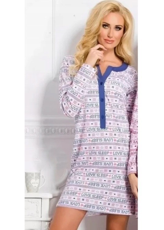 Koszula damska z wysokiej jakości bawełny (100%), z długim rękawem, wzorzysta. Do połowy zapinana na guziczki. Idealna również dla mamy karmiącej.