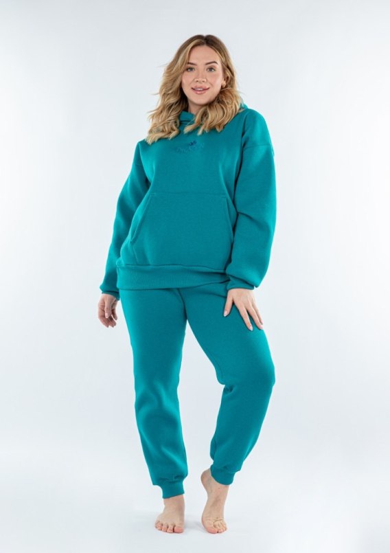 Długie spodnie dresowe wchodzące w skład kompletu to połączenie wygody i stylu. Zakończone ściągaczami przy nogawkach, zapewniają doskonałe dopasowanie i praktyczność. Minimalistyczny haft, umieszczony w dyskretnym miejscu, podkreśla elegancki wygląd spodni, jednocześnie idealnie korespondując z haftem na bluzie. Miękka i ciepła bawełna, z której są wykonane, sprawia, że spodnie są nie tylko komfortowe, ale także trwałe i odporne na użytkowanie.