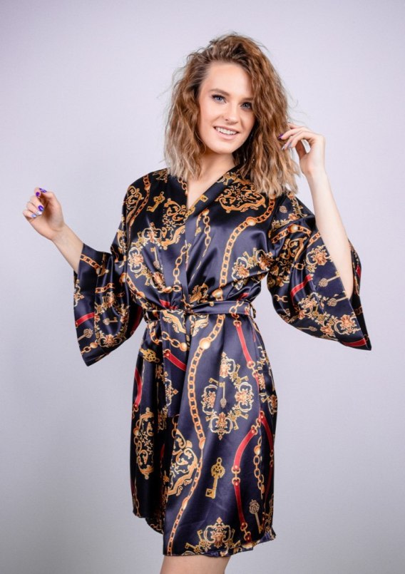 Mówi się, że klasyka nigdy nie wychodzi z mody… Co więc powiesz na klasyczną podomkę? Ten przyjemny, satynowy szlafroczek sięga do połowy ud oraz posiada szerokie, długie rękawy. Dołączony do niego jest pasek, dzięki któremu można pięknie wyeksponować swoją talię. Podomka z kolekcji świątecznej, dostępna jest w trzech wspaniałych wzorach. Pierwsza z nich, posiada nadruk złotych łańcuszków, kluczyków i bordowych paseczków, które idealnie komponują się z ciemnym kolorem materiału. Kolejna, zaskakuje materiałem w czarno-czerwoną kratkę z zabawnymi, świątecznymi nadrukami. Natomiast, trzecia będzie idealna dla każdej fanki zimowego szaleństwa - posiada nadruk rodem ze stoku. Kiedy założysz naszą podomkę po raz pierwszy, trudno będzie Ci się z nią później rozstać - zresztą przekonaj się o tym sama! Pamiętaj, aby przed złożeniem zamówienia zapoznać się z nasza tabelką z rozmiarówką. Dzięki niej unikniesz wybrania niewłaściwego rozmiaru bielizny nocnej. W przypadku pytań - śmiało, skontaktuj się z nami! Ciesz się świąteczną magią w cudownej podomce od Dkaren! MATERIAŁ: SATYNA SKŁAD SUROWCOWY: 100 % POLIESTER. Jak prać i prasować? Taki materiał najlepiej prać ręcznie w temperaturze 30°C. Proszę nie chlorować, nie czyścić chemicznie i nie wirować. Prasować w temperaturze 110°C.