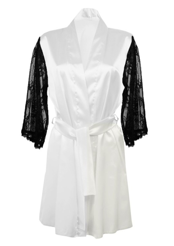 PRZYJEMNY, ELEGANCKI SATYNOWY SZLAFROK. WYKOŃCZONY DŁUGIMI RĘKAWAMI Z DELIKATNEJ KORONKI. PRZEPLATANY PASKIEM SATYNOWYM, KTÓRY IDEALNIE DOPASOWUJE SIĘ DO SYLWETKI, UWYDATNIAJĄC ATUTY KOBIECEGO CIAŁA. WERSJA KOLORYSTYCZNA: WSZYSTKIE WERSJE KOLORYSTYCZNE (CZARNA KORONKA).