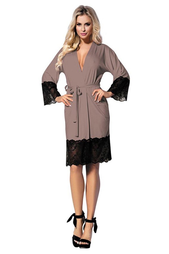 Jeżeli cenisz sobie wygodę, ale nie chcesz rezygnować ze zmysłowej i zarazem eleganckiej bielizny, to podomka Jasmin jest właśnie dla Ciebie! Łączy w swoje przyjemny materiał, jakim jest wiskoza oraz seksowną koronkę, którą wykończone są szerokie rękawy oraz dół szlafroczka. Dostępny jest w wielu kolorach i rozmiarach - dlatego mamy pewność, że wybierzesz perfekcyjnie dobraną podomkę, która będzie poprawiała Ci samopoczucie za każdym razem, gdy tylko ją założysz. Możesz skryć pod nią seksowny komplet bielizny lub założyć ją na nagie ciało - w obu przypadkach na pewno zrobisz ogromne wrażenie na swoim partnerze i z przyjemnością będziesz spoglądać w lustro. Wiązanie w talii sprawi, że jednym ruchem będziesz mogła pozbyć się podomki, a dodatkowo odpowiednio związany poprawi Twoje proporcje, Wybierz model Jasmin i ciesz się wysoką jakością bielizny. Jak prać i prasować wiskozę? Materiał wiskozę prać z procesem ochronnym w temepraturze nie wyższej niż 30°C / 40°C. Prasować w temperaturze nie wyższej niż 150°C. Nie czyścić chemicznie i nie suszyć w suszarce bębnowej. Pamiętaj, że najlepszym sposobem jest suszenie na wieszaku. Skład surowcowy: 92%Wiskoza, 8% elastan.Informacje dotyczące bezpieczeństwa