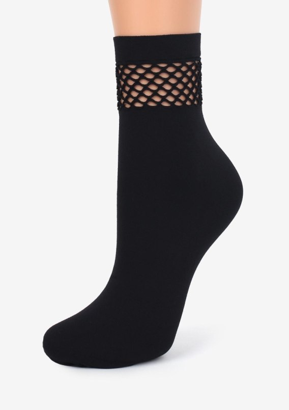 Gładkie skarpetki damskie o grubości 60 den z kabaretkową wstawką na górze. Posiadają wygodny ściągacz. Idealne na wiosnę i jesień, zapobiegają otarciom stopy w obuwiu. Skład: 92% nylon, 8% elastan.