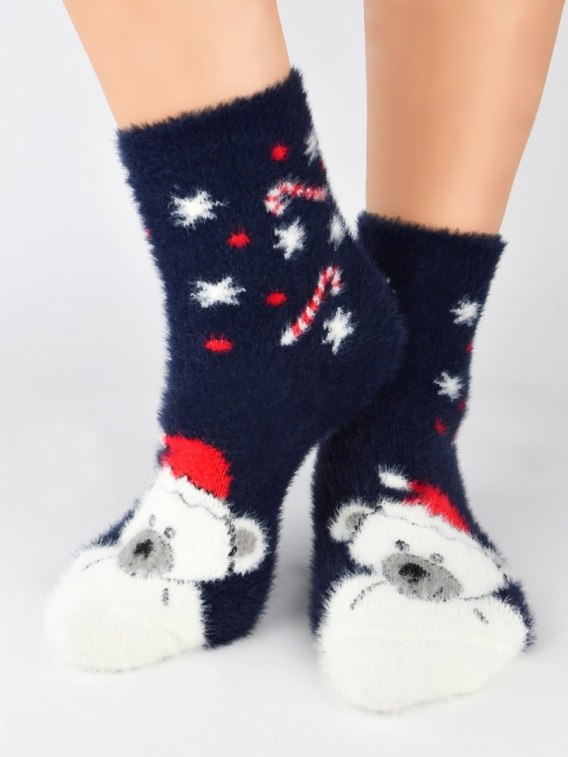 Skarpetki damskie wykonane z miłej, miękkiej i puchatej dzianiny. Ozdobione motywem świątecznym. Idealne na prezent. Wygodny, nieuciskający ściągacz. Skład: 86% poliamid, 12 poliester, 2% elastan.