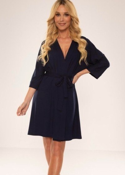 Elegancki, prosty szlafrok o minimalistycznym kroju dostępny w róznych kolorach. Długość do kolan, rękawy 3/4 , wiązany w pasie, wygodny w noszeniu. Pasuje do koszulek oraz piżam z kolekcji Visa. Skład: 94% viscosa, 6% lycra.
