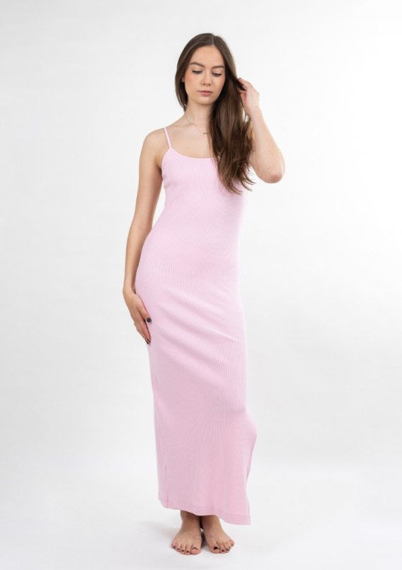 Wykonana z wysokiej jakości prążkowanego materiału, sukienka jest nie tylko elegancka, ale również komfortowa. Prążkowana faktura dodaje jej subtelności, a jednocześnie podkreśla figury, tworząc efekt wysmuklający. Prążek jest gruby dzięki czemu nie ma obawy że materiał będzie prześwitywał.